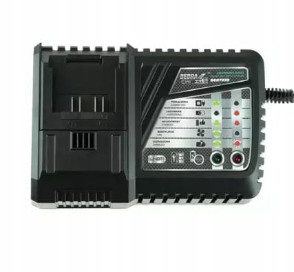 - Dodatkowo ładowarka wyposażona jest w diodowy system informacji o akumulatorze, oraz pełni funkcję diagnostyczną.