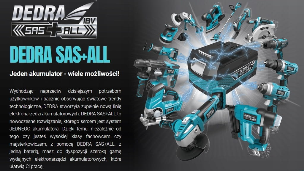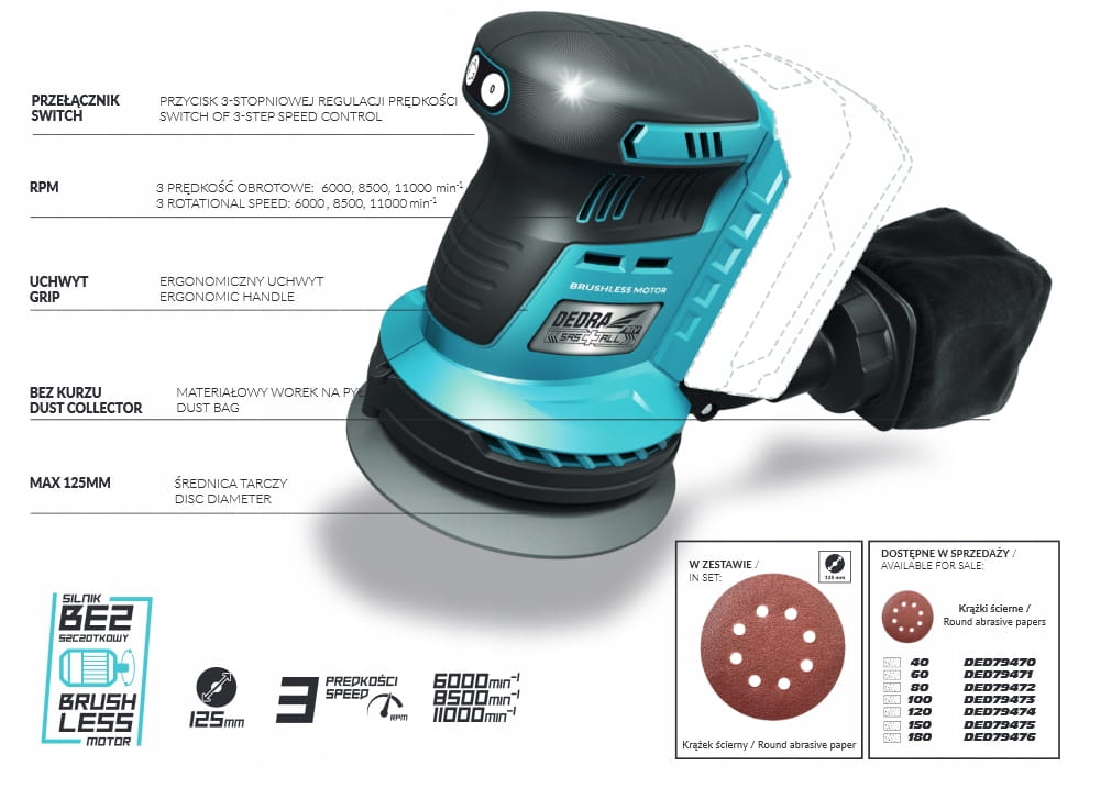 - 1 x Akumulatorowa szlifierka mimośrodowa DEDRA SAS+ALL DED7062