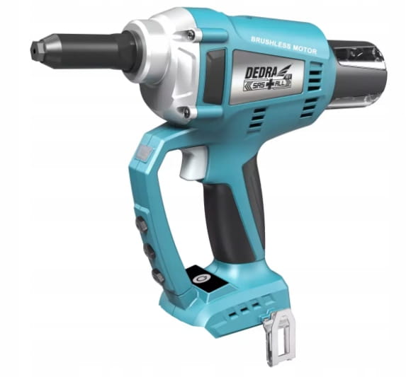 - Dodatkowo nitownica akumulatorowa DED7155 posiada oświetlenie LED, które bezpośrednio wpływa na precyzyjność pracy oraz ogólny komfort użytkowania, a także gumowaną rękojeść, która zapewnia użytkownikowi stabilność chwytu.
