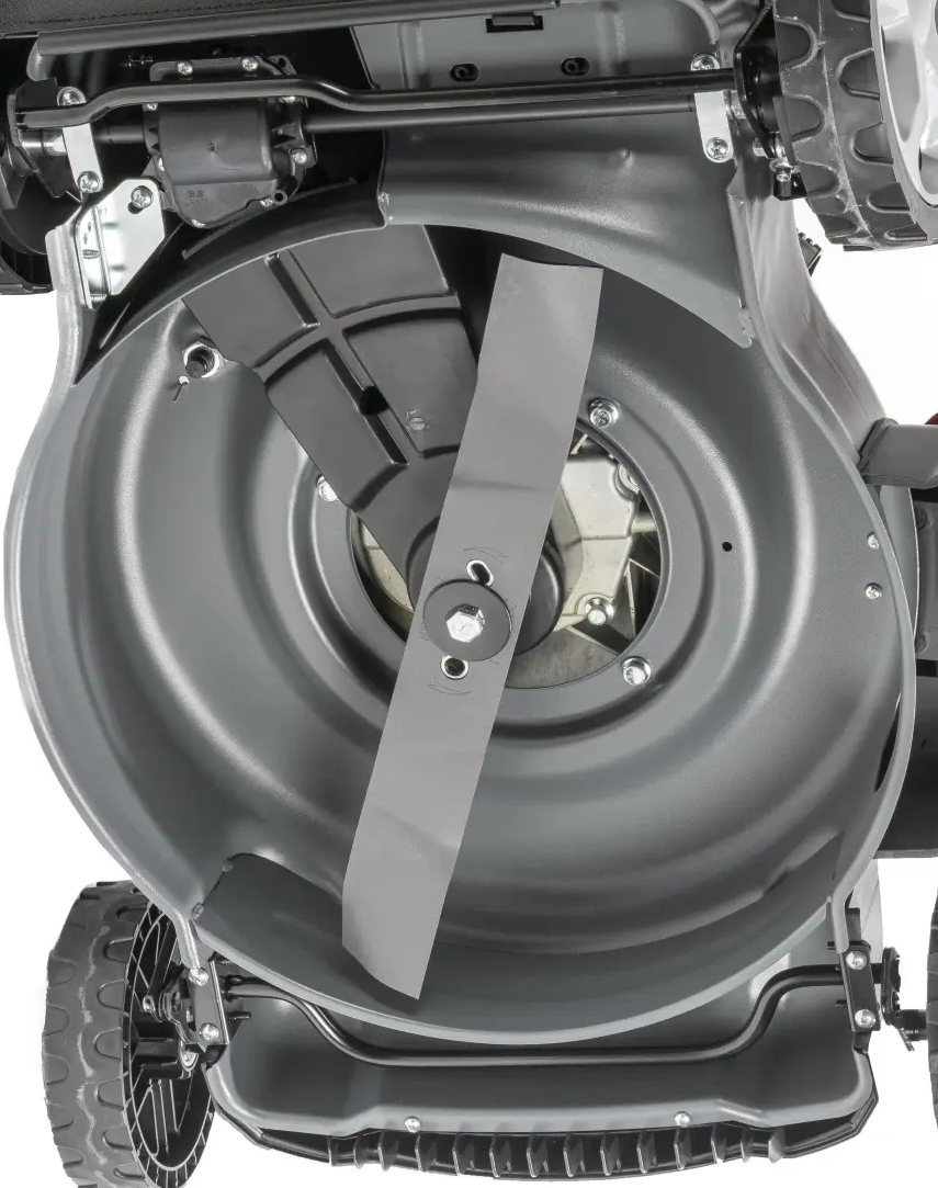 Dodatkowo kosiarka wyposażone jest w możliwość mycia obudowy - do korpusu kosiarki możemy podłączyć wąż ogrodowy z szybkozłączem żeńskim – męski króciec jest na obudowie kosiarki. Przy włączonym silniku odkręcamy kran i woda podawana jest przez wąż na wewnętrzną część obudowy, a ostrze swoją siłą obrotową rozprowadza wodę i „myje” kosiarkę od spodu – tam gdzie najwięcej zaschniętej zlepionej trawy.