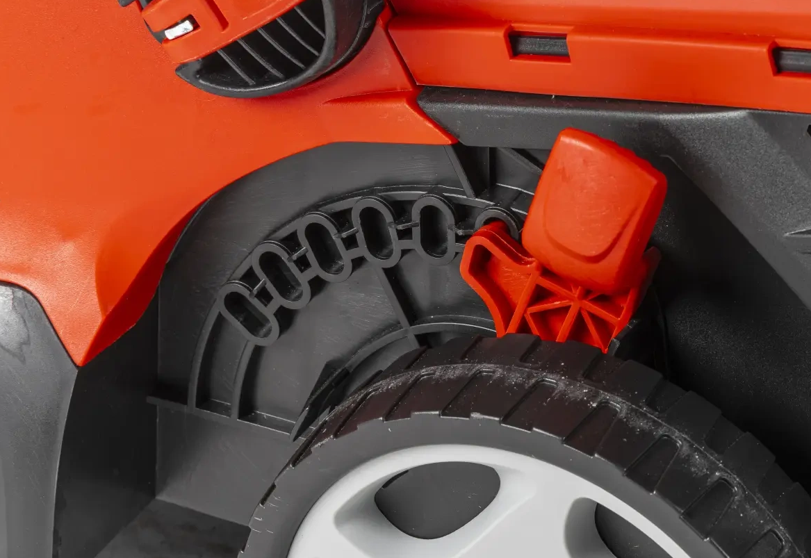 - Składana rączka – umożliwia łatwe przechowywanie kosiarki, oszczędzając miejsce potrzebne do magazynowania