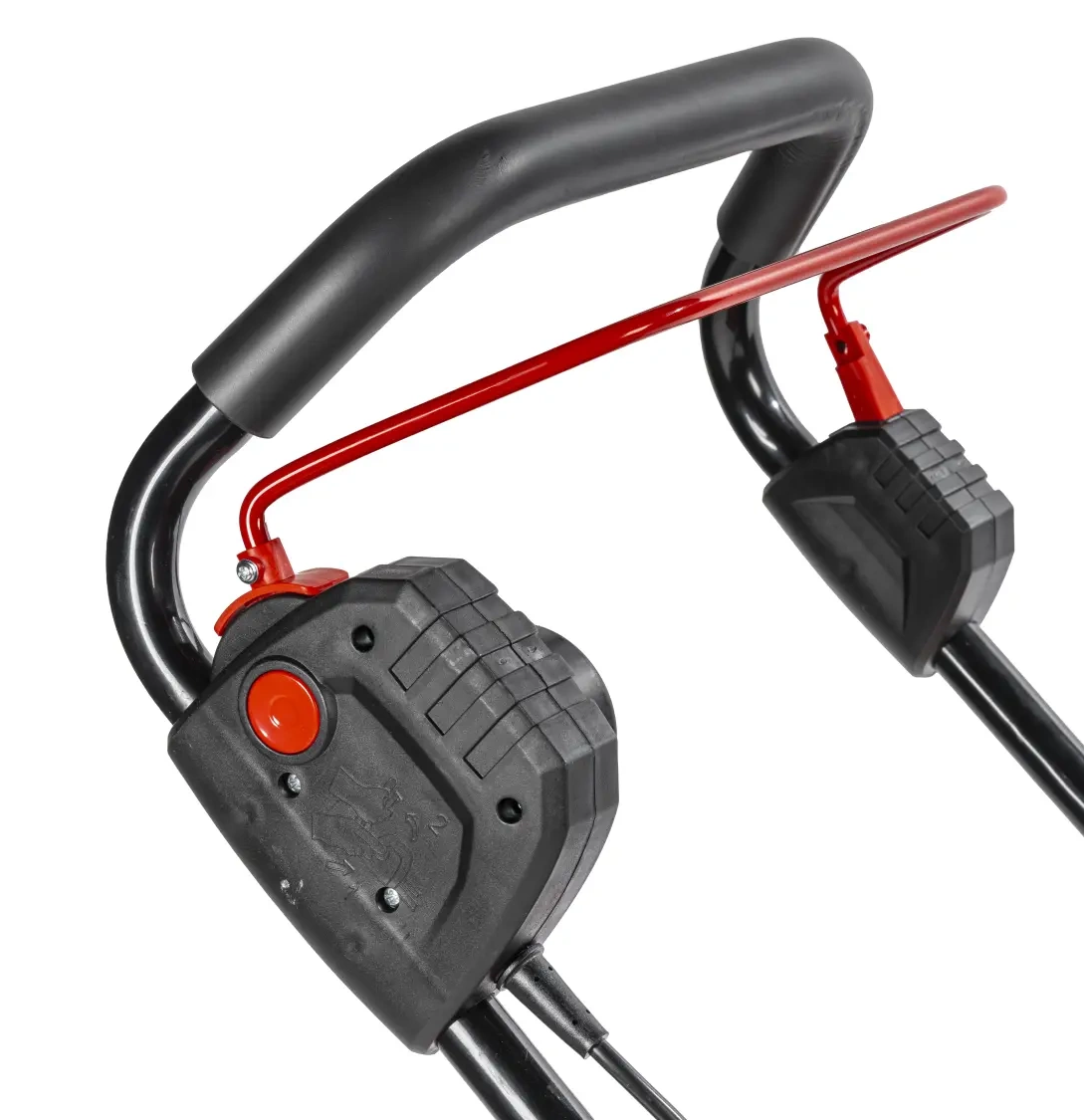 - Regulacja wysokości uchwytu – umożliwia dopasowanie kosiarki do wzrostu użytkownika
