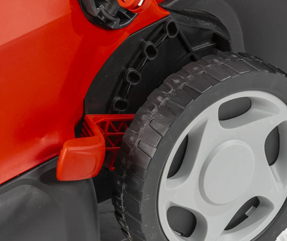 - Składana rączka – umożliwia łatwe przechowywanie kosiarki, oszczędzając miejsce potrzebne do magazynowania