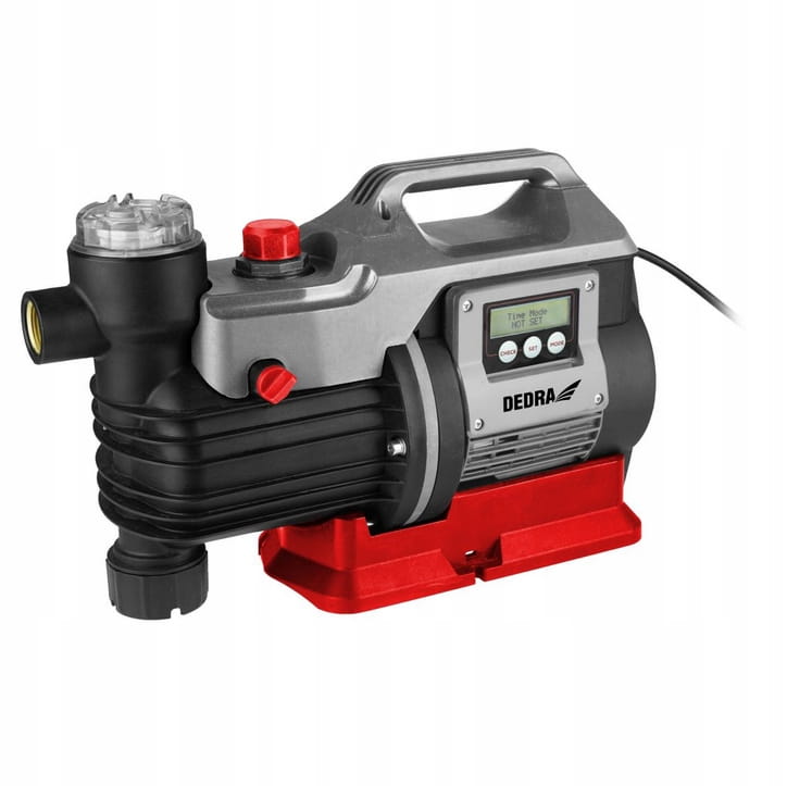 - Ogrodowa pompa wody DEDRA DED8868LCD zasilana jest z gniazdka, a jej 1000W silnik pozwala na uzyskanie przepływu 3800L/h.