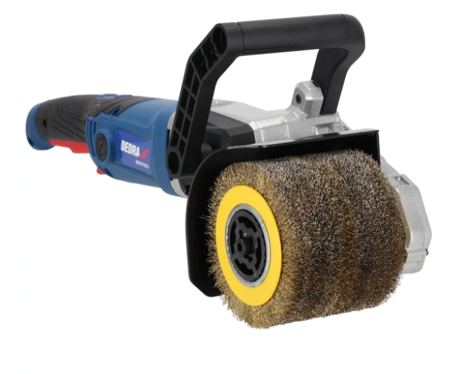 Zapewnia doskonałe efekty, niezależnie od rodzaju powierzchni, dlatego polecana jest zarówno profesjonalistom, jak i pasjonatom majsterkowania. Sprawdzi się idealnie do usuwania powłok malarskich, rdzy czy innych zanieczyszczeń powierzchniowych, a także do wygładzania, strukturyzowania, matowania i postarzania obrabianych materiałów. Co istotne, praca satyniarką przynosi zdecydowanie lepsze i szybsze rezultaty niż korzystanie ze szlifierki kątowej czy ręcznej szczotki drucianej. Ważnymi cechami tego modelu są regulacja prędkości obrotowej, która pozwala na dopasowanie tempa pracy do specyfiki danego materiału i zadania, oraz stała prędkość obrotowa, która utrzymuje się niezależnie od siły nacisku na obrabiany materiał. Te funkcje gwarantują wysoką wydajność nawet podczas intensywnej eksploatacji, umożliwiając skuteczne radzenie sobie z trudnymi zadaniami przy zachowaniu pełnej kontroli nad procesem obróbki. Dodatkowym atutem jest funkcja miękkiego startu, która zapewnia stopniowe zwiększanie prędkości obrotowej, dzięki czemu urządzenie pracuje płynnie i bez szarpnięć, co zwiększa komfort i bezpieczeństwo użytkowania. Narzędzie zostało również wyposażone w możliwość podłączenia odkurzacza, co pozwala na efektywne odprowadzanie pyłu, utrzymując czystość w miejscu pracy.