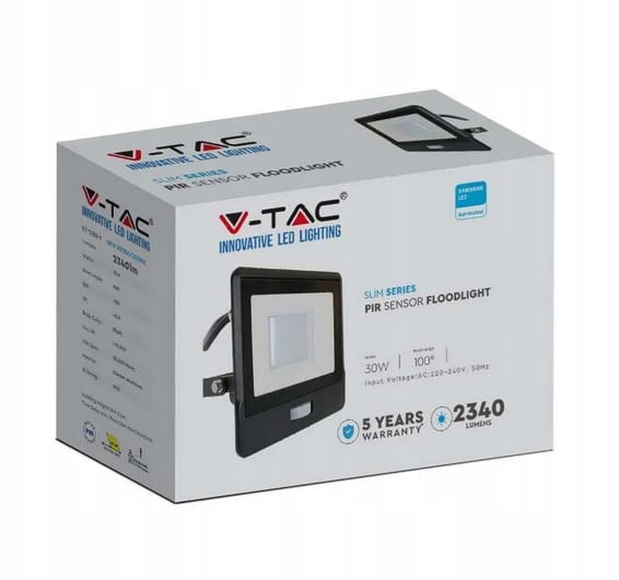 - 1 x Projektor LED V-TAC 30W SAMSUNG CHIP Czujnik Ruchu Czarny Przewód 1M VT-138S-1 4000K 2340lm