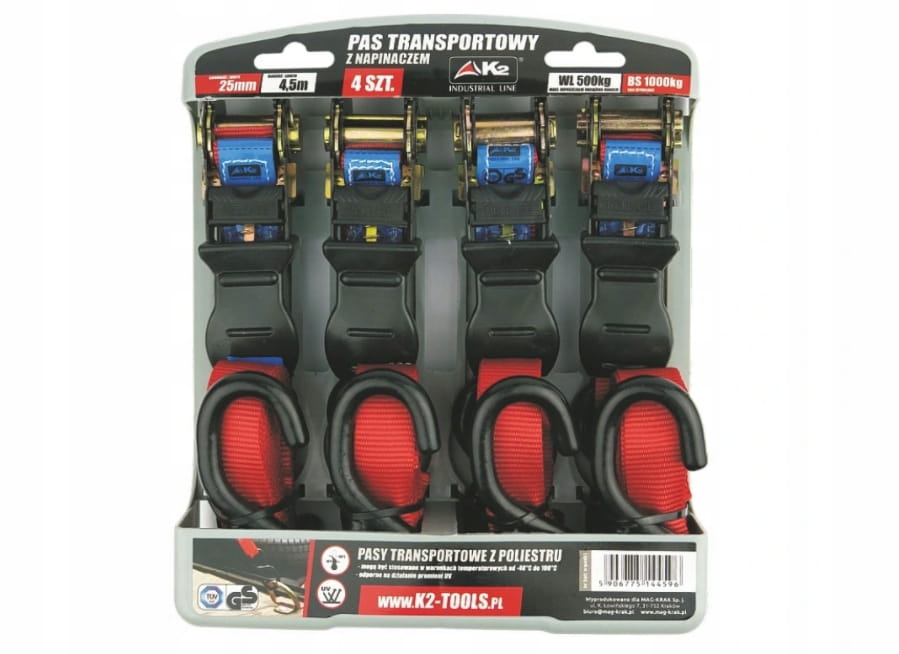 - K2 PAS TRANSPORTOWY Z NAPINACZEM 4 SZT. 500KG