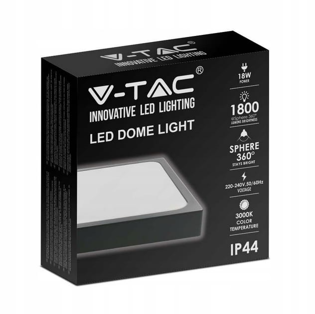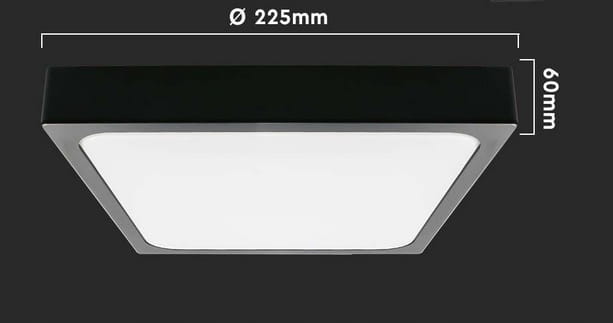 - 1 x Plafon V-TAC 18W LED Kwadrat IP44 23x23cm Czarny VT-8618B-SQ 4000K 1800lm