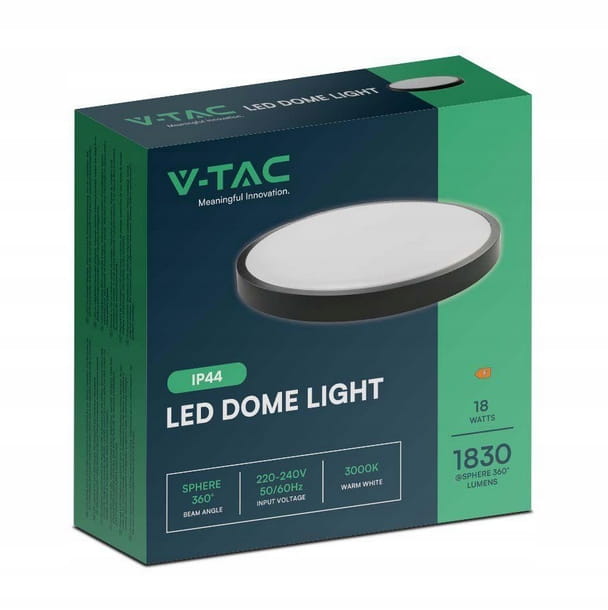 - 1 x Plafon V-TAC 18W LED Okrągły 25cm Natynkowy IP44 Czarny VT-8618B 4000K 1830lm