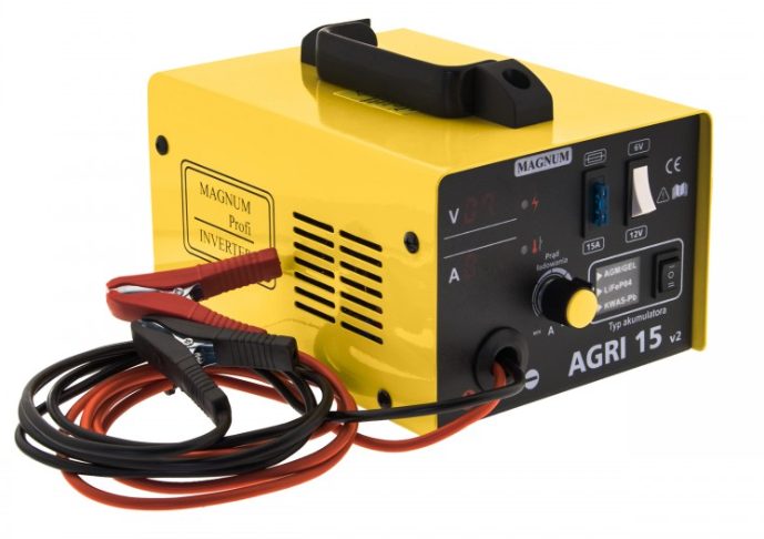 - 1 x Prostownik inwerterowy MAGNUM AGRI 15 V2 6/12V 15A 230V