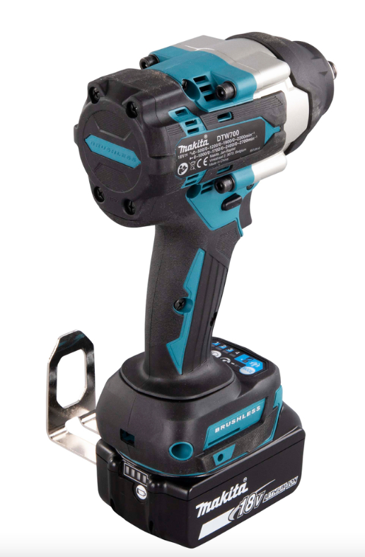 Nowy klucz udarowy Makita 18 V LXT® DTW700 to wydajny, bezszczotkowy klucz udarowy z kwadratowym uchwytem mocującym 1/2" z zabezpieczeniem przed zsuwaniem się nasadek w postaci pierścienia C. Maksymalny moment obrotowy 700 Nm powoduje, że jest to idealne narzędzie do zastosowań wymagających wysokiego momentu dokręcania. Możliwość ustawienia jednego z 3 trybów automatycznego zatrzymania urządzenia dostępne zarówno przy prawych jak i lewych obrotach. W trybie pełnej prędkości obrotowej skrócony zostaje skok spustu włącznika zapewniając szybsze osiągnięcie pełnej prędkości obrotowej ograniczając zmęczenie dłoni użytkownika. Podwójna dioda LED oświetlająca obszar roboczy z funkcją opóźnionego wygaszania.