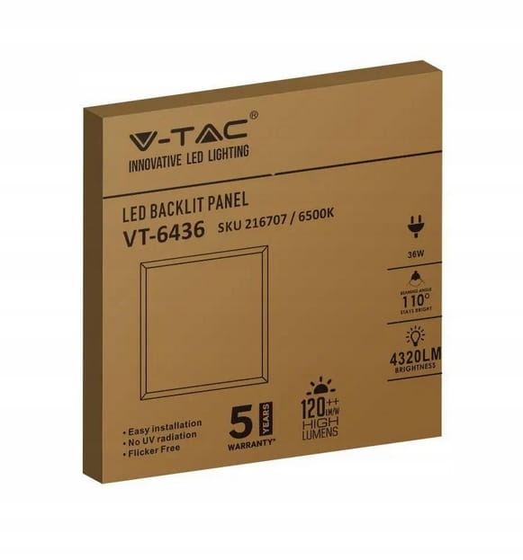 PANEL LED V-TAC OPRAWA 36W 600x600 BACKLIGHT 33mm VT-6436 4000K 4320lm