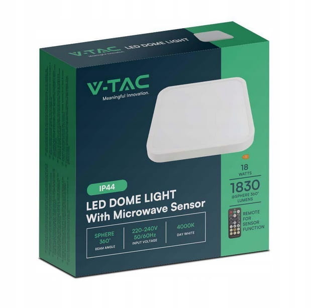 - 1 x Plafon V-TAC 18W LED Kwadrat 25x25cm Natynkowy Pilot Czujnik Ruchu IP44 Biały VT-8618S 4000K 1830lm