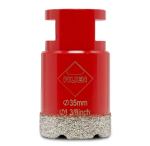 Wiertła DRYGRES są idealne do wiercenia w gresie, gresie porcelanowym, granicie i marmurze. Diament w wiertłach DRYGRES nakładany jest technologią lutowania próżniowego, co zwiększa ich odporność na wysokie temperatury oraz tarcie. Wiertła DRYGRES 6-12 mm sprawdzają się doskonale podczas montażu akcesoriów i elementów dekoracyjnych.. Pozostałe kornki DRYGRES 20-75 mm pozwalają na profesjonalne przygotowanie otworów pod instalacje wodne, odpływy, puszki elektryczne itd. Wiertła DRYGRES, dzięki gwintowi M14, mogą być używane bezpośrednio na szlifierce, lub dzięki łącznikowi (ref. 05976) na wiertarce bez udaru. Średnia trwałość wierteł DRYGRES 6-12 mm to 25 otworów, a dla rozmiarów 20-75 mm - 60 otworów. ZAWSZE zależy ona od typu materiału i jego grubości, oraz odpowiedniego chłodzenia i użytkowania. Wiertła DRYGRES mogą wykonywać otwory do 36 mm głębokości. Wiertła DRYGRES 6-12 mm mają w środku wosk, który topi się podczas użytkowania ułatwiając chłodzenie i odprowadzanie cząstek wierconego materiału (wiertła można dalej użytkować nawet po wyczerpaniu wosku. Kres żywotności wiertła oznajmia tylko całkowita utrata diamentów). Boczny otwór w koronkach DRYGRES 20-75 mm pozwala na lepsze chłodzenie i usuwanie pozostałości po wywierceniu każdego otworu. Należy pamiętać o każdorazowym oczyszczeniu i sprawdzeniu wiertła przez rozpoczęciem wiercenia. Maksymalna szybkość robocza wiertła wynosi od 14000 obr/min. Dla zapewnienia dobrego wykończenia otworu oraz trwałości wiertła nie należy przekraczać podanych wielkości obrotowych, jednocześnie zaleca się wykonywanie okrężnych ruchów wiertłem dla lepszego chłodzenia.