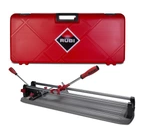 Przecinarki ręczne serii TS-MAX to lekkie i funkcjonalne narzędzia. Idealnie nadają się do intensywnych cięć płytek ceramicznych, a w szczególności płytek porcelanowych (typ BIa). Wszystkie modele przecinarek ręcznych TS-MAX zawierają praktyczny i wydajny łamacz jednopunktowy z maksymalną siłą nacisku 800 kg zaprojektowany specjalnie do cięcia twardych materiałów o grubości do 15 mm. Łamacz posiada tzw. funkcję SMART POWER regulującą nacisk w zależności od grubości płytki, dzięki czemu maksymalna siła jest aplikowana tylko do płytek o największej grubości. Uchwyt drążka w przecinarce TS-MAX jest wykonany z podwójnego materiału, ponadto ma ergonomiczny kształt, co zapewnia wygodę użytkowania. Ponadto wszystkie przecinarki są wyposażone w duży przymiar boczny ułatwiający lepsze pozycjonowanie płytek oraz większą precyzję cięć seryjnych. Przecinarki ręczne TS-MAX posiadają dużą wzmocnioną podstawę gwarantującą większy komfort i stabilność. Dwie prowadnice stalowe są chromowane, szlifowane i kalibrowane oraz zabezpieczone przed korozją. System podwójnych prowadnic gwarantuje lepszą widoczność, a dzięki temu możliwie największą dokładność każdego cięcia. Możliwość stosowania wszystkich wymiennych noży tnących z zakresu od 6 do 22 mm pozwala na wykorzystywanie przecinarek TS-MAX do każdego rodzaju materiału ceramicznego z gwarancją uzyskania maksymalnej wydajności i jakości cięcia. Przecinarki ręczne TS-MAX posiadają na wyposażeniu standardowym dwa noże tnące - 8 mm ENDURE do cięcia płytek ceramicznych ściennych i 10 mm SILVER do płytek gresowych lub kamiennych. Profesjonalnym dopełnieniem przecinarki RUBI TS-MAX jest walizka z mocnymi zawiasami zapewniająca ochronę podczas transportu i przechowywania.
