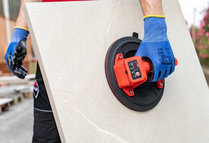 - Zasilana bateryjnie przyssawka przeznaczona do przenoszenia płytek ceramicznych.