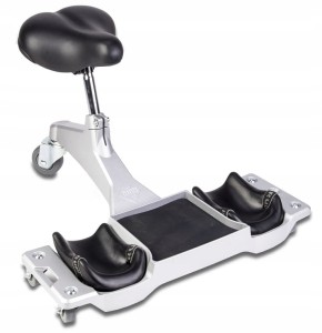 Siodełko SR-1 posiada praktyczny pojemnik idealny do wykorzystania przy układaniu płytek, parkietów, czyszczeniu i innych operacjach na powierzchni podłogi.