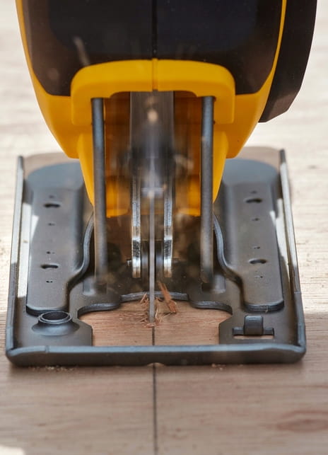 - Urządzenie zostało wyposażone w mocny silnik, który jest w stanie wykonać do 2500 skoków na minutę, prędkość cięcia regulujemy za pomocą spustu włącznika.