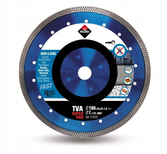 Znajomość rynku oraz ciężka praca doprowadziły w RUBI do zaoferowania wykonawcom tarczy TURBO VIPER – TVA. Tarcza ta jest zalecana do cięcia na sucho twardych materiałów takich jak granit, płytki rustykalne, klinkier, materiały ogniotrwałe, łupki oraz oczywiście płytki gresowe.